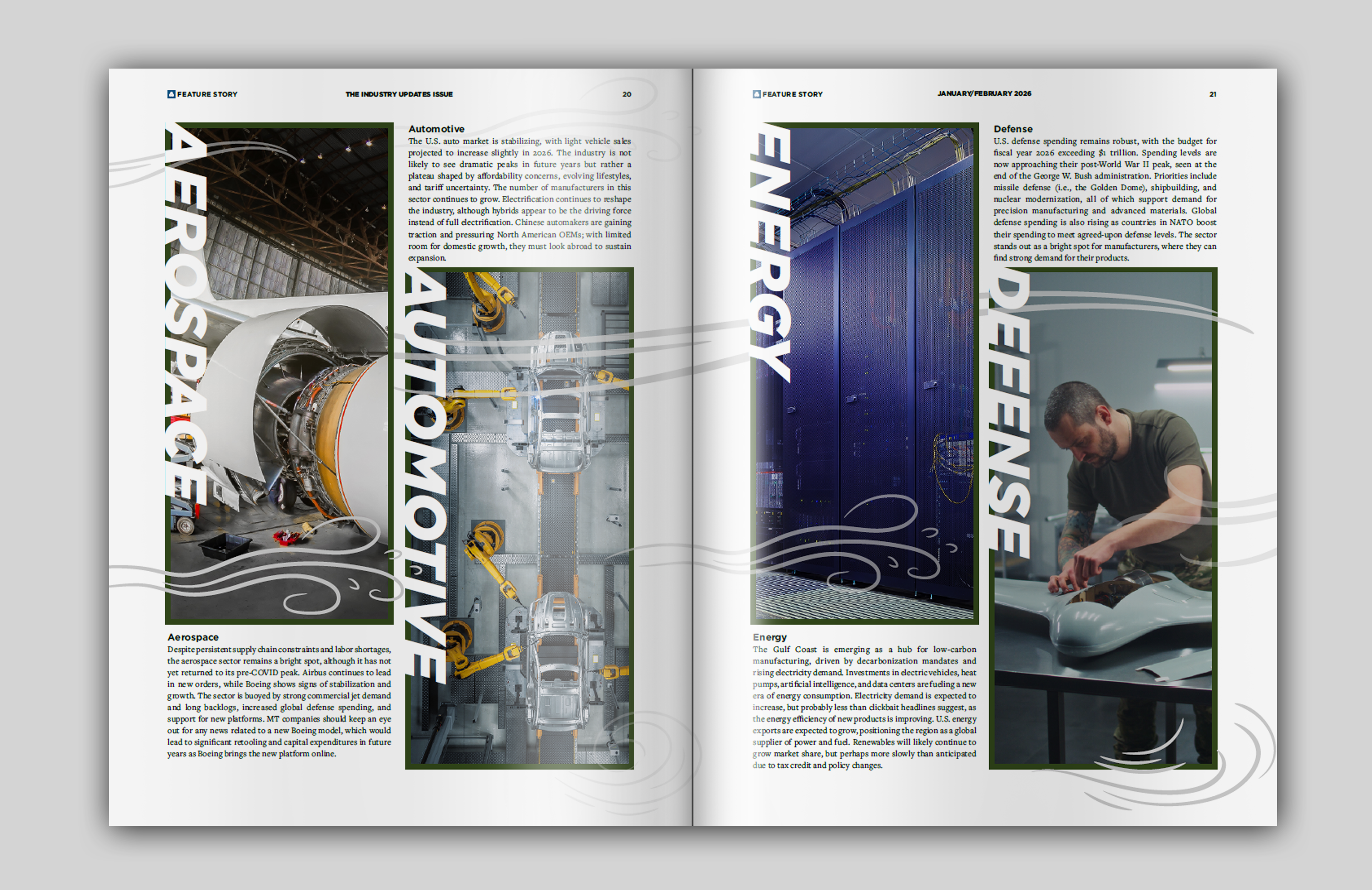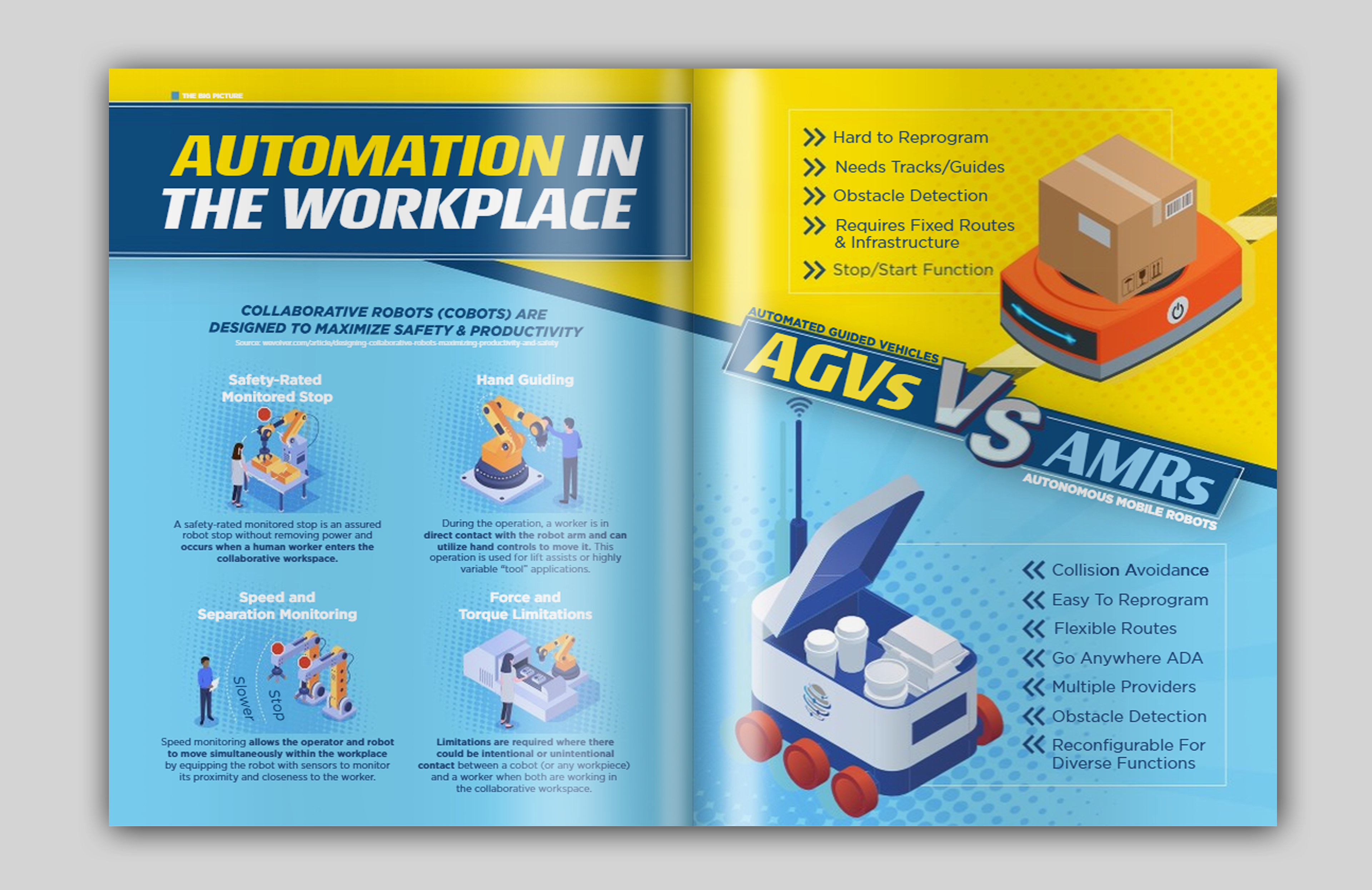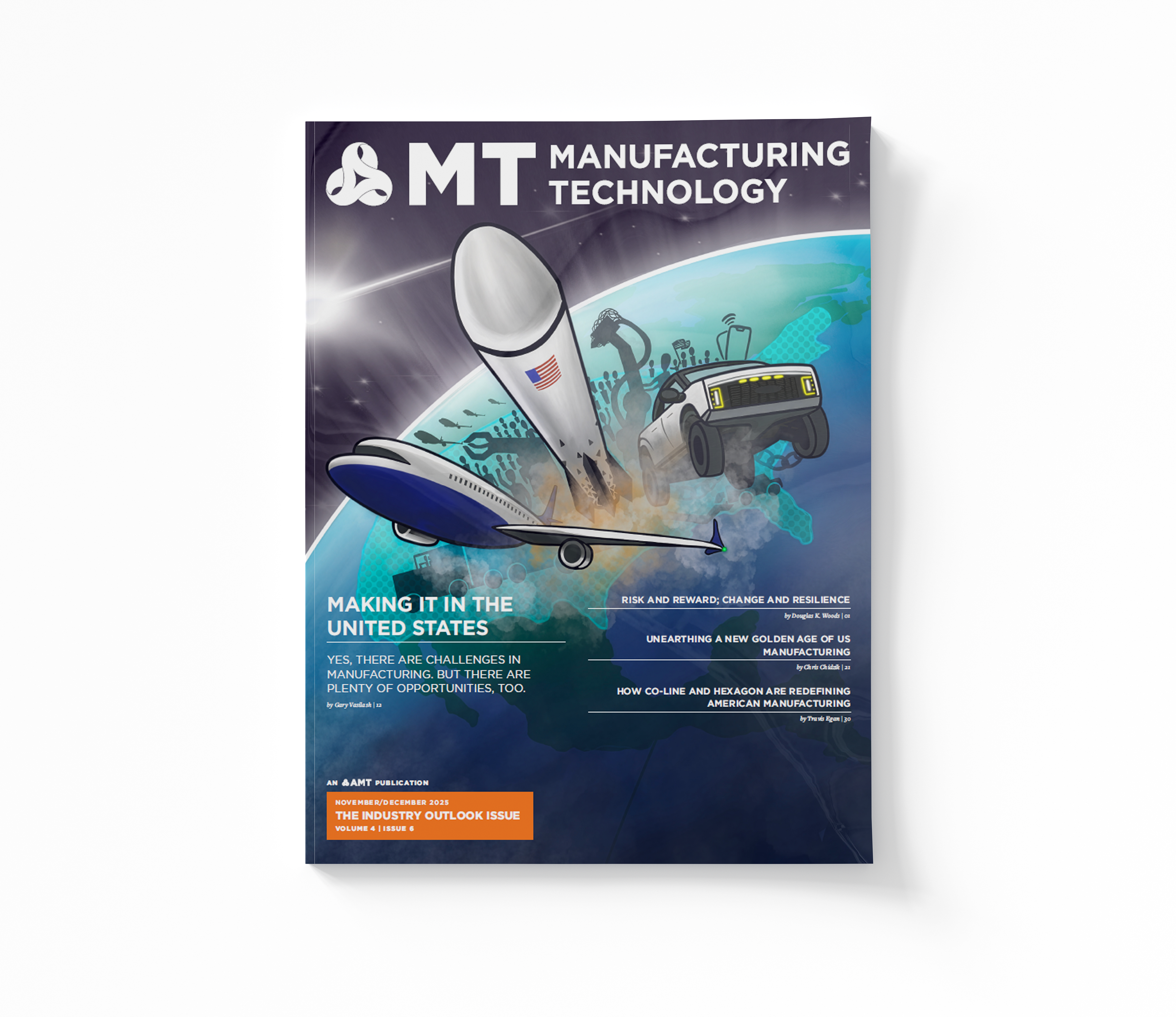 At AMT – Association for Manufacturing Technology, I played a key role in transforming our association newsletter from a traditional newspaper into a modern, bi-monthly magazine publication. I created layouts, infographics, comic strips, illustrations, and more to produce a comprehensive and visually appealing source of information for the manufacturing industry. All advertisements in these spreads were also designed by me.